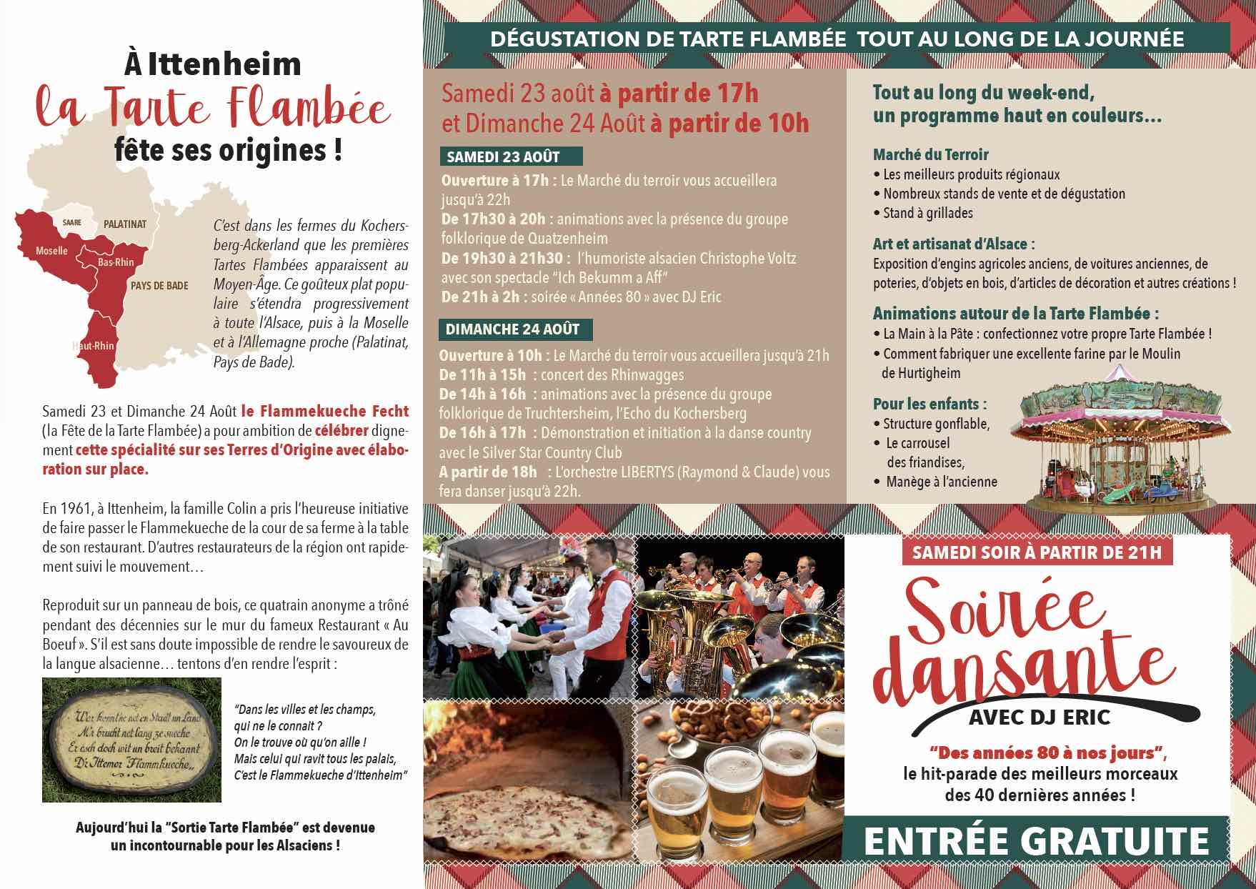 Atelier de préparation et de cuisson de sa propre tarte flambée Exposition de véhicules agricole Vous pourrez déguster différentes tartes flambée traditionnelles réalisées sur place durant ces 2 journées