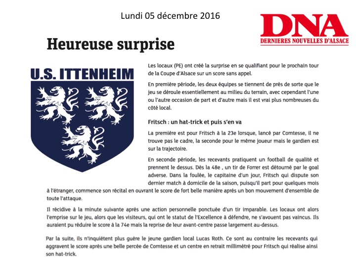 Il est vrai que si l’équipe récupère peu à peu ses blessés, dont certains de longue durée comme le capitaine Irlinger, elle pourra être plus ambitieuse.